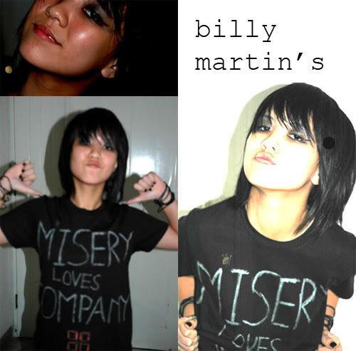gue bangun jem 11. udah ga sabaran. di make up sama nyokap gue yang mnurut gue sih KEREN BGT. haha goth glam gitu. trus gue kutex item, pake baju item buatan gue yang ada tulisan MISERY LOVES COMPANY. bangle item sebanyak2nya. ini itu smua item. cos kmarin pas chika nanya,